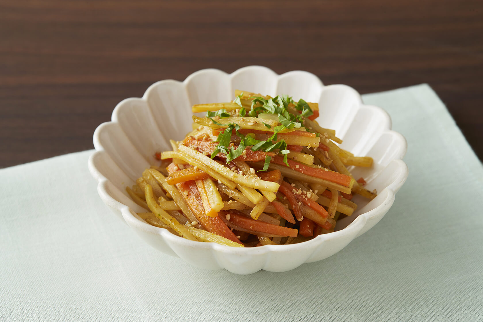 ②フライパンに「CO・OP純正ごま油」を熱し①の大根の皮、にんじんを入れ、しんなりするまで炒める。